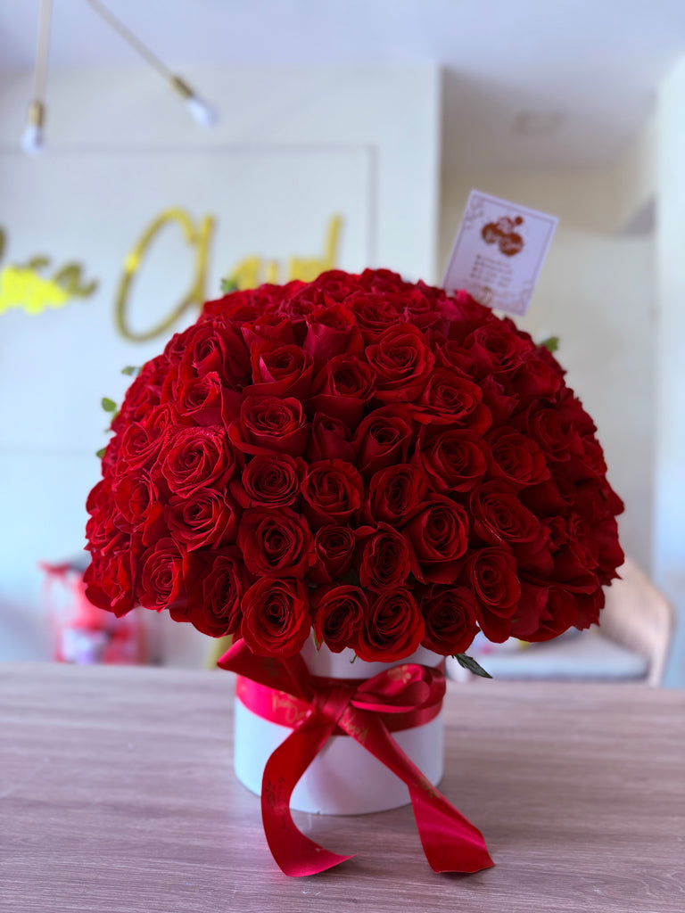 Carolina es un clásico que incluye 100 rosas rojas en una base circular redonda. Perfecto para expresar amor y pasión en cualquier ocasión. Con un toque elegante y romántico, esta composición floral es ideal para sorprender a esa persona especial.